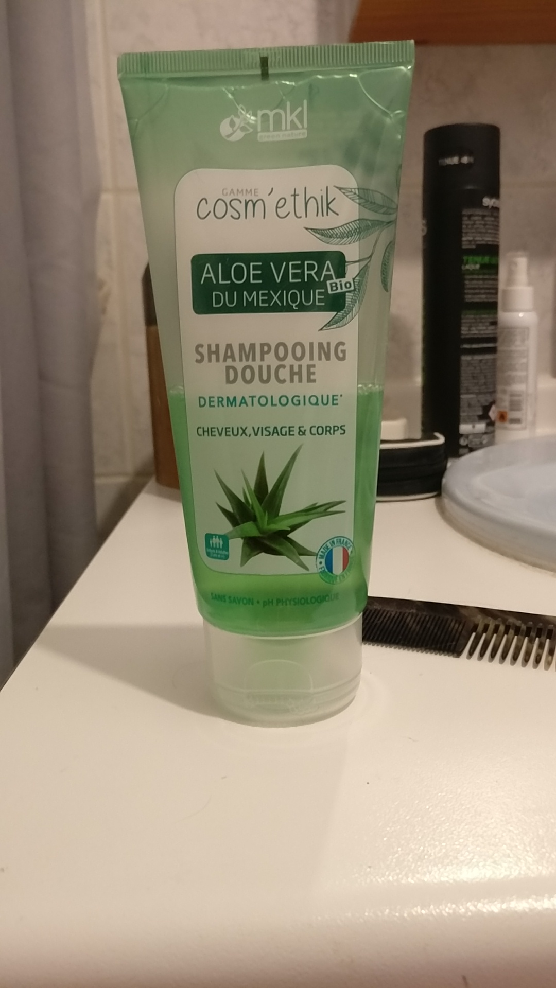 Textez, approuvez shampoing solide aloès. Surprise par sa mousse, (économie d eau pour le rinçage) cheveux (coloré)doux. Je recommande pour les curieuses. 😉